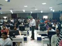 Mr. Ramanathan addressed the trainees at TalentSprint. Over 250 trainees attended the lively, interactive session. Mr. Ramanathan brought in a product company perspective and discussed the typical challenges faced by indian companies in IT adoption. He also discussed how they are using social media effectively within enterprises to reach out to employees.